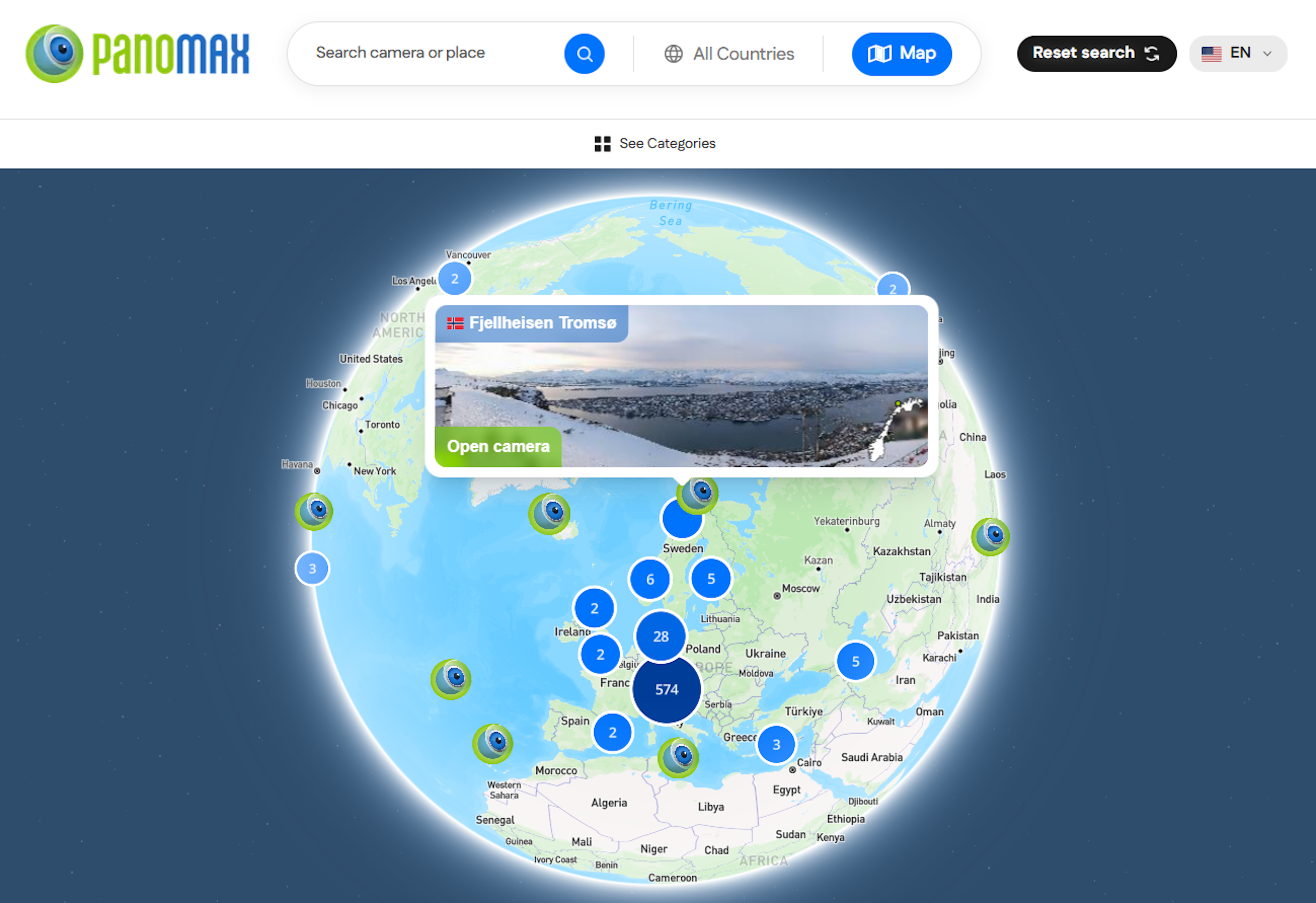 Your camera displayed on the global map among key sites.
